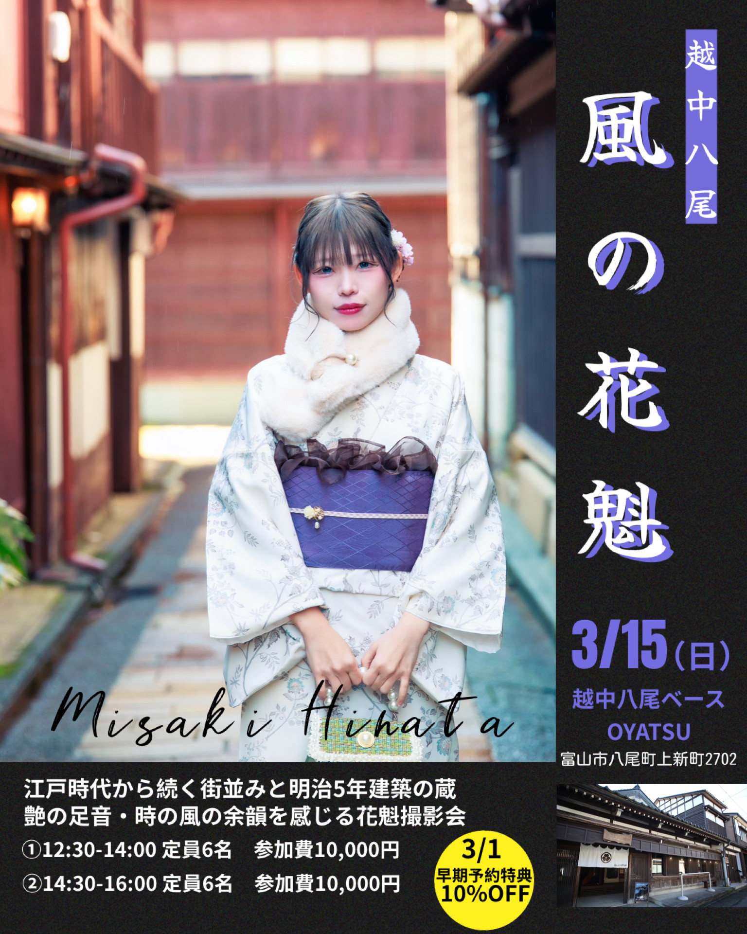 日向みさき初の本格花魁姿での撮影会 蔵と歴史的な街並みのロケーション 予約は3/1 21:00開始いたします。
